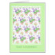 A very pretty Birthday Card with the front cover greeting in Italian and a pattern of pink Roses, creamy white Mock Orange and purple Lavender on a white background with a pale green border, from a handpainted watercolour design by Judy Adamson. The inside is left blank for your own message.