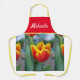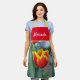 Pretty Floral Pastel Tulip Pattern Woman's Kitchen Apron, with a fully customizable name. Designed from my original cat illustration.