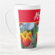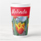 Pretty Floral Pastel Tulip Pattern Woman's Kitchen Mug, with a fully customizable name. Designed from my original cat illustration.