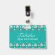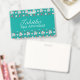 Pretty white and red floral pattern on aqua background. Add personalization in white script font
