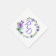 Pretty wedding paper napkins done in white, with a colourful floral wreath, with the bride and groom's initials done in lavender. Personalize the initials for your wedding needs. Matching products are available.