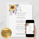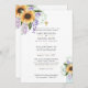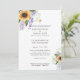 Pretty watercolor flowers, yellow Sunflowers, purple and pink floral theme ideal for spring and summer wedding. Also included pretty sage and emerald green greenery and leaves, mason jar, a gold cross, classic elegant design with parents names and customizable scripture. Design by LeahG,