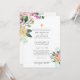 Pretty watercolor flowers, purple, pink and peach colours ideal for a spring, summer, fall or winter wedding. Also included pretty sage and olive green greenery and leaves, mason jar, a gold cross, classic elegant design with parents names and customizable scripture. Design by LeahG,