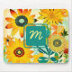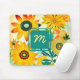 Yellow and turquoise whimsical folk art flowers mousesepad. Add initials in the personalized area.