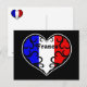 A beautifully elegant scrollwork heart in the French flag colours on a post card.