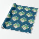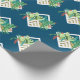 This fun wrapping paper is great for birthdays, weddings, or decoupage craft projects! The dark navy blue background is decorated with a pattern of succulents in a geometric deco style planter.