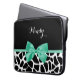 Pretty Giraffe Print Mint Green Bow With Name Laptop Sleeve