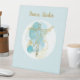 Pretty tabletop sign features gold line art style ballerina with abstract blue watercolor and gold background.  Customize with name or other business details.