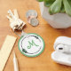 Pretty metal round key chain done in white, with a green border and a decorative black and green circle, with a green one letter monogram. Customize this to make a great gift for any occasion.