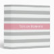 A stylish and pretty personalized binder with a blush pink and light grey stripes ribbon design. Elegant and modern binder.