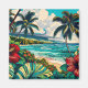 Comic book style pop art Hawaiian Island. Vacation or travelling themed coaster.