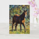 My original artwork is featured on this pretty horse art card. It is of my original photograph of a bay horse in a farm field with large trees behind it, processed with an oil pastel painterly style for an artsy appearance. The peaceful scene makes it a unique art card to send to anyone. This card is blank inside so you can write your personal letters and notes.