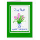 A pretty Persian New Year Greeting Card for an Uncle, with a blue and white pot of pink hyacinths in a green border and Happy Norooz in blue, from a watercolour painting by Judy Adamson. A custom front version of this design is also available and you can personalize the inside message of this card if you wish.