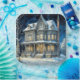 Pretty Victorian Christmas house with pretty snow in the background. Christmas party supplies.