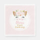 Cute pink and gold birthday party napkin for kitty lovers! A kitten face with a floral crown adorns the centre. Easy to personalize with name and event.