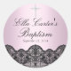 Pink Baptism Sticker. Pretty black floral lace & diamond cross. Customize with your own details. PLEASE NOTE all flat images! They Do NOT have real lace, Diamonds or Jewels!!
