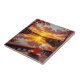 Ceramic tile with a pretty illustration of a sunrise in the morning overlooking a lake view at a lake houses with a cup of warm coffee sitting on the ledge.