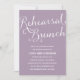 This elegant rehearsal brunch invite features rustic white calligraphy and a gorgeous purple background that resembles a lilac, orchid, or lavender flower.