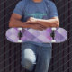This cool skateboard is perfect for people who love lavender. This geometric shape pattern features various shades of purple, pink, and lavender in a diamond shaped pattern.