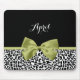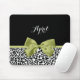 Personalize by adding the name of any girly girl to this pretty black and white leopard print mousepad with a cute spring green ribbon tied into an elegant bow. This chic and stylish animal print design is a flat printed image, and does not contain actual ribbon.