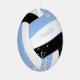 This cute volleyball ornament features the realistic image of a volleyball that has light blue, black & white panels and a sprinkling of tiny silver faux glitter stars, upon which you can customize the player's name on the front and commemorative year on the back - by katz_d_zynes