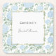 Pretty Light Blue White Flowers Bridal Shower Square Paper Coaster