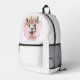 Pretty Llama Animal Pink Wildflower Monogram Printed Backpack