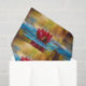 Tissue paper with a photograph of a pond with a lovely red lotus flower poking out on top.