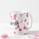 A charming personalized mug adorned with a cascade of floating hearts, making it a perfect gift for Valentine's Day or just because.