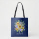 Pretty Modern Navy Sunflower & Wildflowers Design Tote Bag