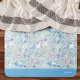 Add a nautical touch to your bathroom with this pretty ocean seashell pattern custom blue bath mat. Mat has pastel sea shells in shades of blue, purple, and white. At the bottom personalize with a name or other text, or remove, per your preference.