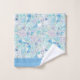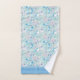 Add a nautical touch to your bathroom with this pretty ocean seashell pattern custom blue bath towel set. Towel set has pastel sea shells in shades of blue, purple, and white. At the bottom personalize with a name or other text, or remove, per your preference.