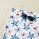 Add a nautical touch to your bathroom with this pretty ocean starfish pattern custom beach or pool towel. Towel has blue and red sea stars on top of pastel blue and white stripes. At the bottom personalize with a name or other text, or remove, per your preference.