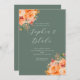 Pretty Orange Floral Elegant Green Wedding Invitation