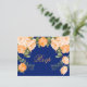 Rsvp Postcard. Matching Products Available - Featured in a pretty botanical orange floral design on a navy blue background ready for you to personalize - If you need further customization, please click the "Click to Customize further" or "Customize "button and use our design tool to resize, rotate, change text or background colour, add text and more. ⭐This Product is 100% Customizable. Graphics and / or text can be added, deleted, moved, resized, changed around, rotated, etc... 99% of my designs in my store are done in layers. This makes it easy for you to resize and move the graphics and text around so that it will fit each product perfectly. ⭐ (Please be sure to resize or move graphics if needed before ordering) You can also "TRANSFER DESIGN" on other Zazzle products and adjust the design to fit most of Zazzle items. (button is down on the right side of the page) Some of the text graphics have ready to fill in the box(es) or you can Click on the "CUSTOMIZE" button to add, move, delete, resize, background colour or change any of the font or graphics. The design is made with high resolution vector and/or digital graphics for a professional print. ⭐NOTE: (THIS IS A PRINT. All zazzle product designs are "prints" unless otherwise stated under "About This Product" area) The design will be printed EXACTLY like you see it on the screen and on the product...so please make sure when you do your changes on the resizing of any of the graphics or text that it fits in the areas correctly and that your spelling and wording is how you like it to be in size, colour and font. If you have any questions about the "DESIGN ONLY" or need help with the design, please contact me at my direct email siggyscott@comcast.net or visit my store link: https://www.zazzle.com/store/designsbydonnasiggy (Copy and Paste) I'll be happy to help. ⭐ ALL OTHER QUESTIONS (ex: shipping, refund, the printing is incorrect, the product, etc...) please contact Zazzle or the Maker ⭐DIRECTLY⭐. Thank you for the support and stopping by my store - DesignsbyDonnaSiggy. © Donna Siegrist ⭐⭐⭐ ZAZZLE promises 100% satisfaction.
