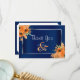 Pretty Orange Flowers on Navy Blue - Thank You Card