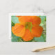 This pretty postcard features a detailed photograph of a pretty orange nasturtium flower surrounded by foliage. The photograph was taken using macro photography and shows the vibrant colour of this popular flower.