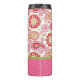 Chic girly Thermal Tumbler done in a pink, green, red and white paisley pattern, with a pink diamond pattern, across the bottom of the tumbler. Personalize the black text to read what you want. Great gift idea for her.
