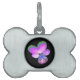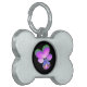 This awesome pet tag features a photograph of a wild Pansy flower. The photo has been artificially coloured resulting in a pansy with glowing pinkish purple petals with green tips petals and a deep blue centre. The background is black to make the flower stand out.