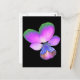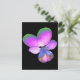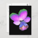 This postcard This design features a photograph of a wild Pansy flower. The photo has been artificially coloured resulting in a pansy with glowing pinkish purple petals with green tips petals and a deep blue centre. The background is black to make the flower stand out.