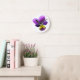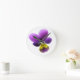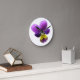 This awesome clock features a highly detailed photograph of a wild pansy flower, taken using macro photography. The flower is purple with a yellow centre.