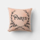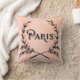 Antique French commercial illustration with decorative wreath and text that reads PARIS. Beautiful decorative pillow, in the French country style. The background is a soft pink with the subtle appearance of texture and just a hint of an antiquing effect. Image is on one side, the other has simply the beautiful light pink colour and antiquing effect. This pillow is available in two sizes, the 20" x 20" square, and the lumbar (rectangular) style, which is13 x 21 inches. What a lovely pillow for any shabby chic or Parisian style decor! We have a full line of pillows that complement this one in our shop.