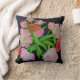 Original oil painting of colourful PARROT TULIPS on a chic black background by artist, Susan Payne-Trutna is now available on a pillow.