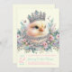 Cute chick baby shower invitation with beautiful little chick adorned with jewels and tiara on a pastel floral background. This girl chick baby shower invitation is easily customized with your text and you can change the background colour on the front and back and the text colour.