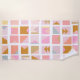 A cute and fun design of little squares with a variety of geometric shapes in pretty pastel colours of pink, coral, and yellow paired with a golden shade of amber.