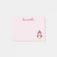 A pretty penguin, this personalized post it notes features a light lavender background with a penguin graphic in the bottom right corner. The top features your name written in cursive pink text. Order yours today!