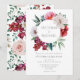 Very pretty pink, red and white peony wreath with bride and groom names inside. A pure white background sets the tone for simplicity. So sweet and delicate. A perfect invitation for your special day.