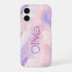 Pretty Personalized Abstract Marble Pink Purple iPhone 16 Case