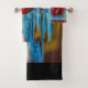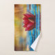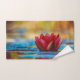 Towel set with a photograph of a pond with a lovely red lotus flower poking out on top.