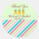 These pretty pineapples thank you stickers features a green background for the top half and pink, blue and green diagonal stripes at the bottom. Order your thank you stickers today!